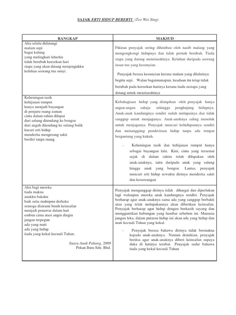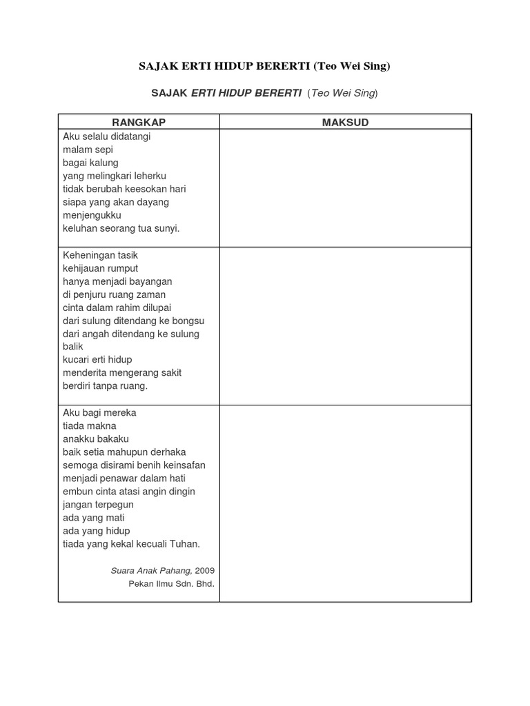 Latihan Pemahaman Sajak Erti Hidup Bererti Pdf
